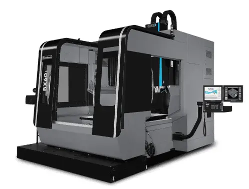 The stability of the double-column, the ladder design of the Z-axis, and the overall weight of the machine (at 42,000 lbs.) provide exceptional accuracy and outstanding surface finish capabilities. Equipped with an 18,000 rpm spindle, the BX60i is designed for high speeds and tight tolerances.
