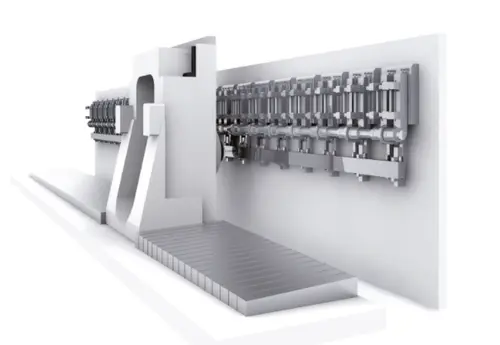 This high-speed machining center for long aluminium stringer components combines the advantages of Sprint-Z3 technology with rapidity and accuracy to provide efficient work piece machining with optimised workpiece handing. The machine is specially designed for machining aluminium profiles (or stringers) of up to 30 metres in length. Thanks to the excellent precision and speed the ECOLINER user can achieve high cutting rates (average machining time of 12 minutes per linear meter), optimum accuracy and excellent surface quality, even with extremely long stringers.