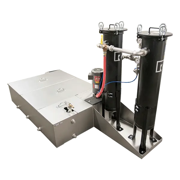 The ALMCO Sediment Tank is a very cost-effective solution for users that have a single deburring machine. These tanks may be used to allow solids to settle out prior to discharge into the drain or they may be equipped with a pump to recirculate liquid to the finishing machine for extended use of compound. This saves significant cost over discharging directly to the drain. The tanks are available with a variety of pump types and options, including bag filter housings to filter particles from the recirculating liquid.