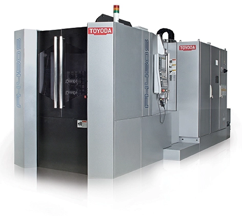 The FH450S is a high-speed horizontal machining center featuring a 15,000 RPM spindle, tool-to-tool cycle time of 1.3 seconds, and a rapid feedrate of 1,968 ipm (50 m/min).