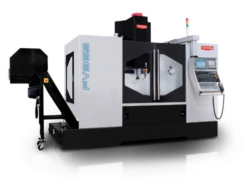 The FV965 is a heavy-duty vertical machining center that features four Y-axis box guideways, a Meehanite cast iron base, and a high-performance spindle.