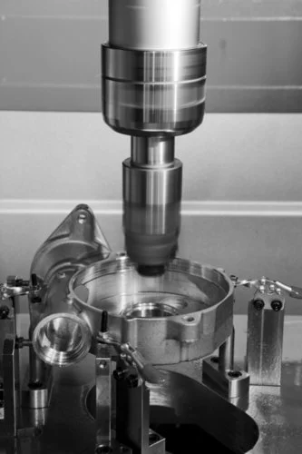Ideal machine for production line of automotive engine parts, the e640V is built with a 12,000 RPM vertical spindle for mass production of aluminum parts such as cylinder block, cylinder head, mission case and rack housing. Includes standard production-line features such as through-table hydraulics, broken tool detection, Toyoda's patented replaceable taper, ultra-fast tool change, and automation interfaces.