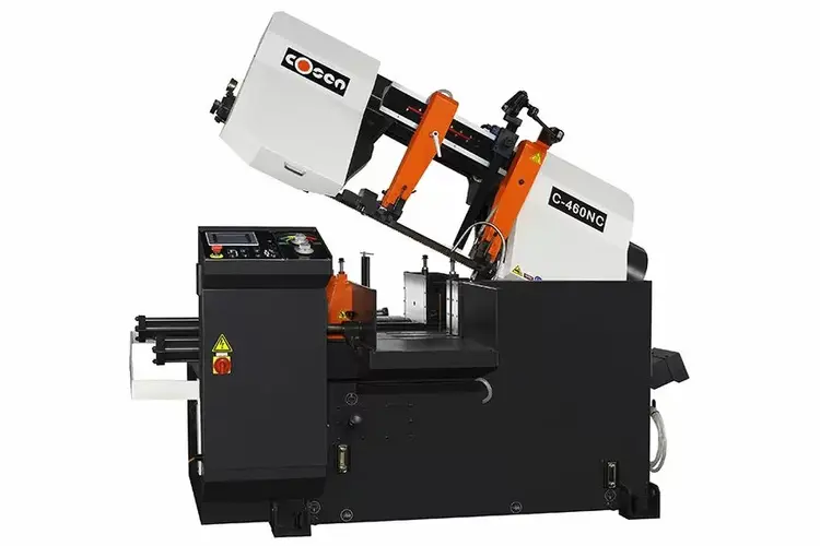 460mm Automatic horizontal scissor type band saw is a high production machine which incorporates a massive base, sturdy saw frame, with an extremely heavy-duty gear box, a 7.5HP drive motor, and a user-friendly programmable control for ease of operation.