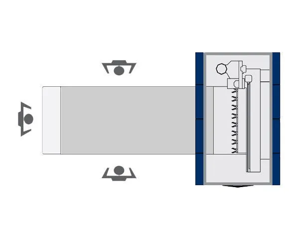 The absence of perimeter protections enables accessing the work surface from all machining centre sides.